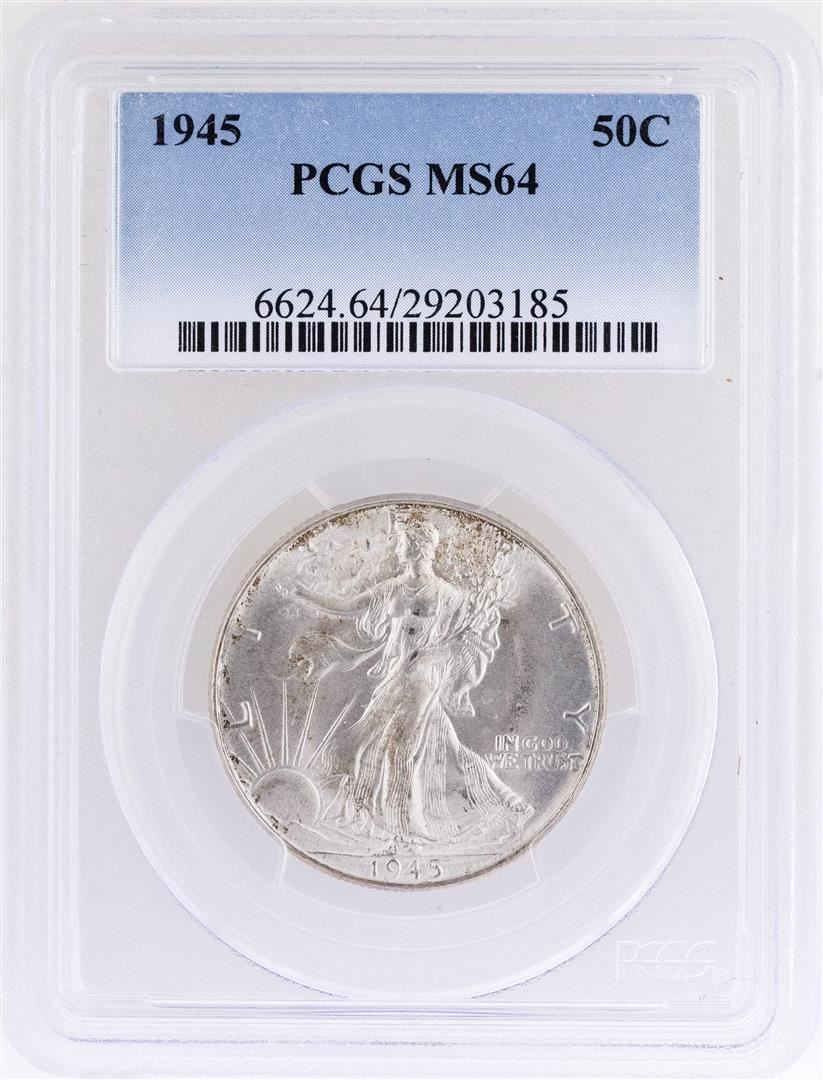 One 1945 Walking Liberty Half Dollar Coin PCGS MS64. PCGS Graded.