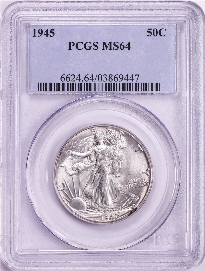 One 1945 Walking Liberty Half Dollar Coin PCGS MS64. PCGS Graded.