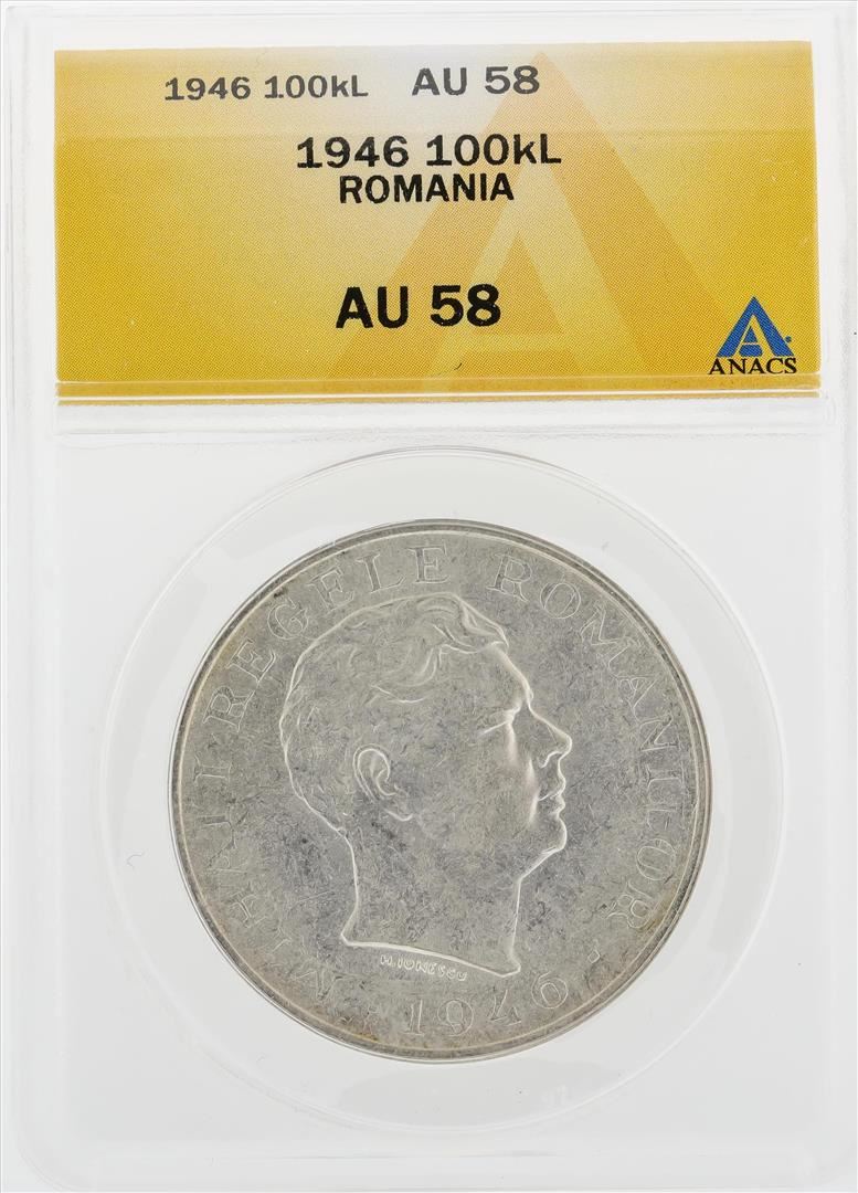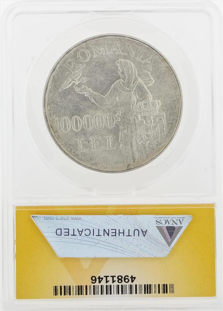 One 1946 100000 Lei Romania Coin ANACS AU58. ANACS Certified.