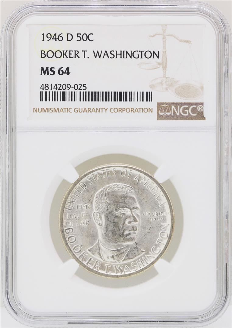 One 1946-D Booker T. Washington Memorial Half Dollar Coin NGC MS64. NGC Certified.