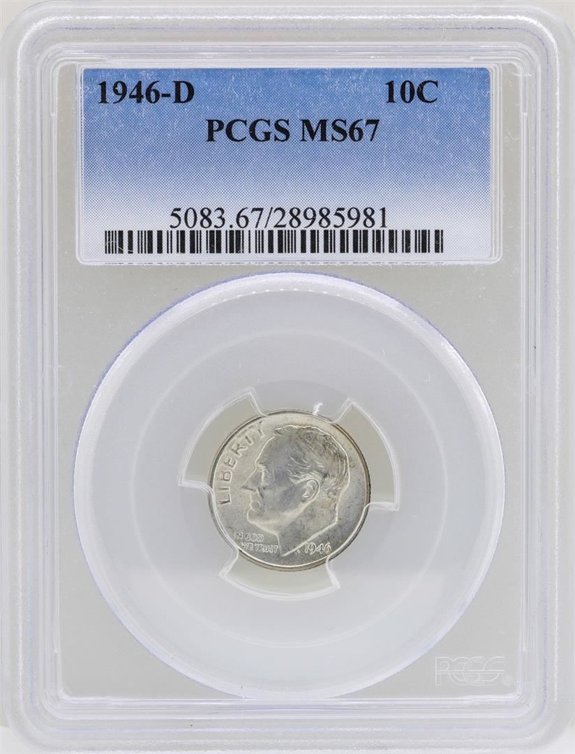 One 1946-D Roosevelt Dime Coins PCGS MS67. PCGS Graded.