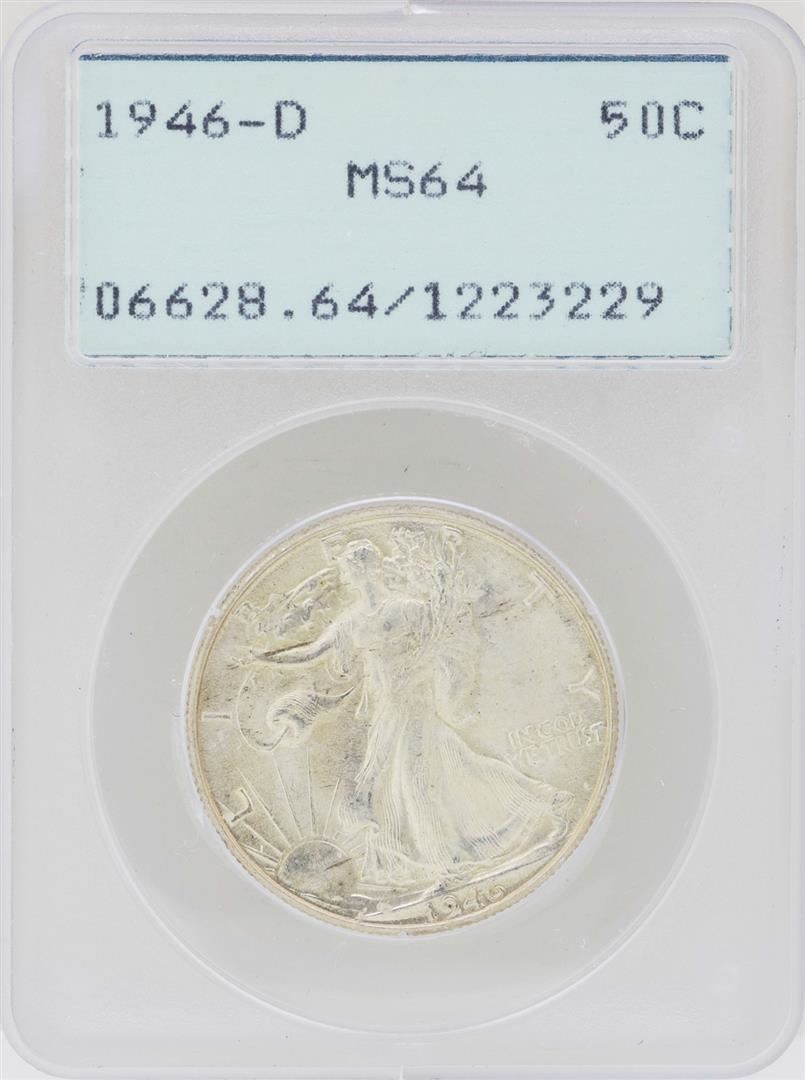 1946-D Walking Liberty Half Dollar Coin PCGS MS64 Green Rattler Holder