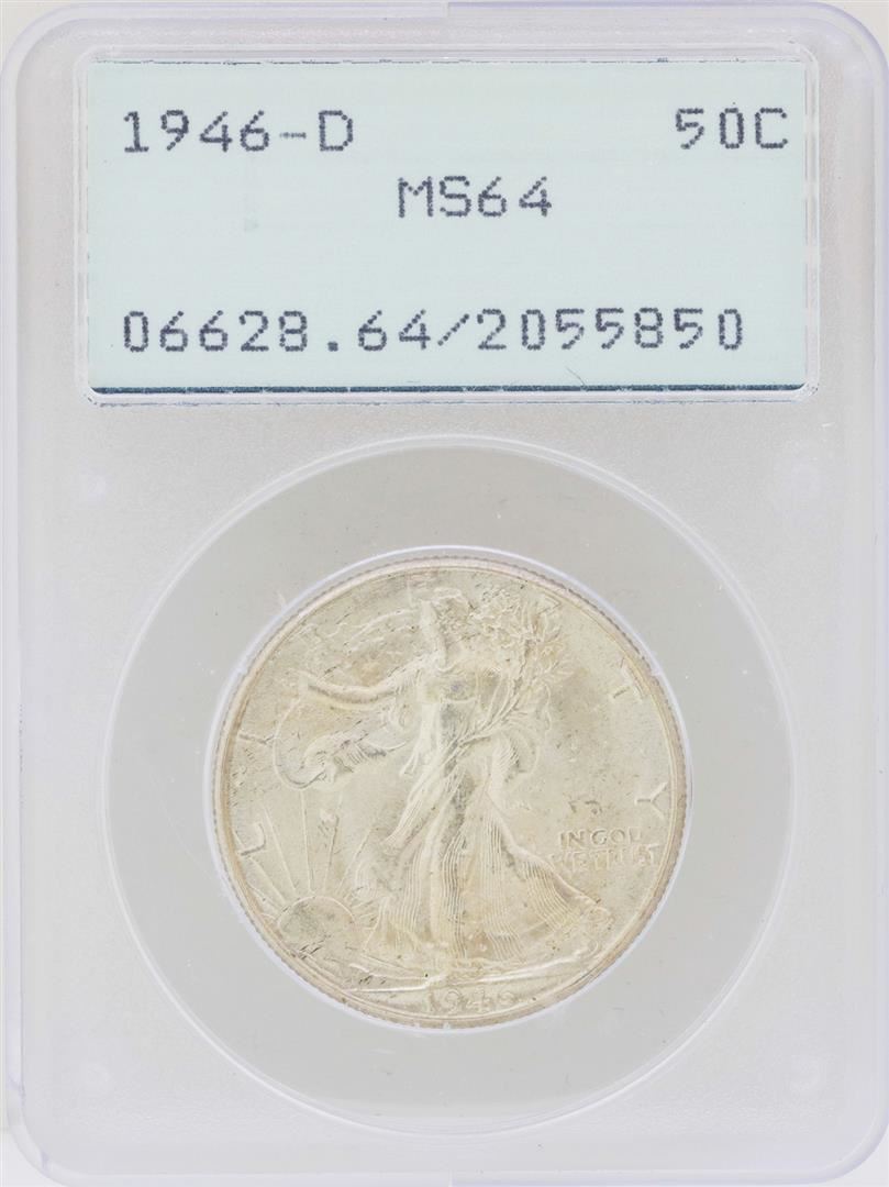 1946-D Walking Liberty Half Dollar Coin PCGS MS64 Green Rattler Holder