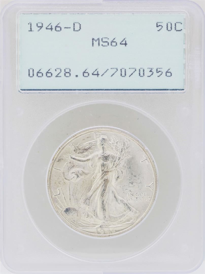1946-D Walking Liberty Half Dollar Coin PCGS MS64 Green Rattler Holder