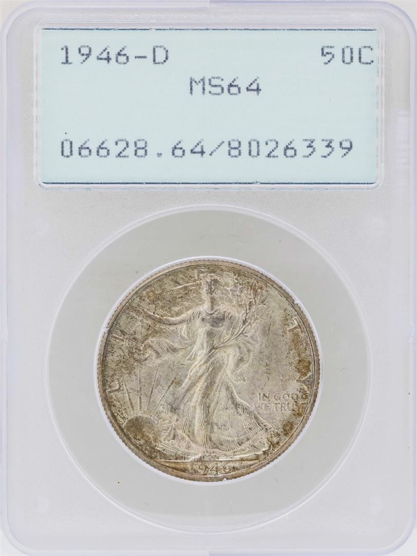 1946-D Walking Liberty Half Dollar Coin PCGS MS64 Green Rattler Holder