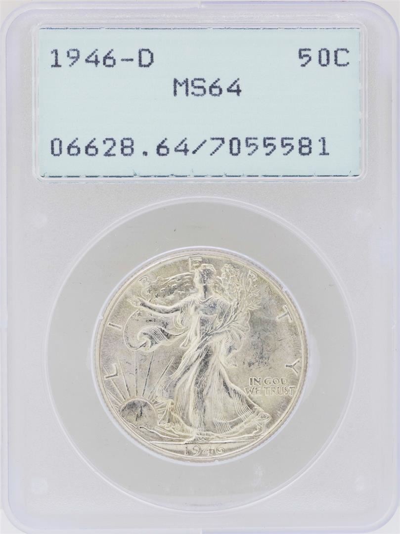 1946-D Walking Liberty Half Dollar Coin PCGS MS64 Green Rattler Holder