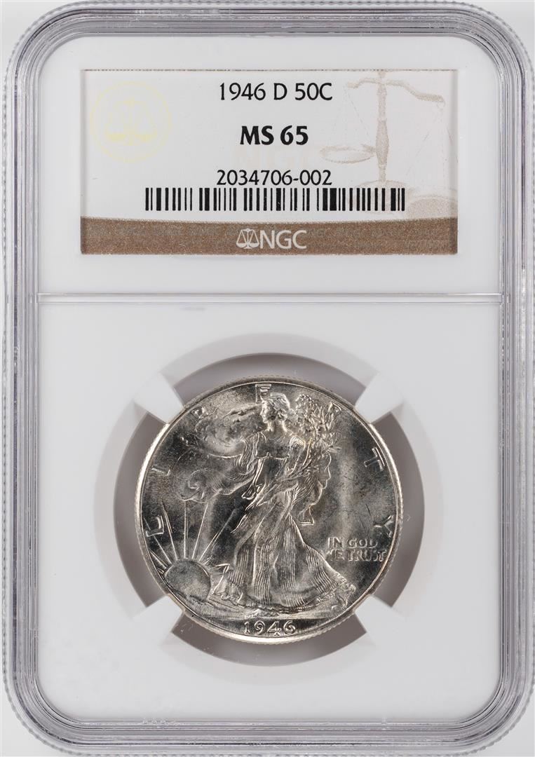 One 1946-D Walking Liberty Half Dollar Coins NGC MS65. NGC Certified.