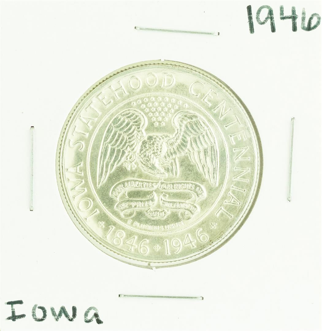 One 1946 Iowa Centennial Commemorative Half Dollar Coin.