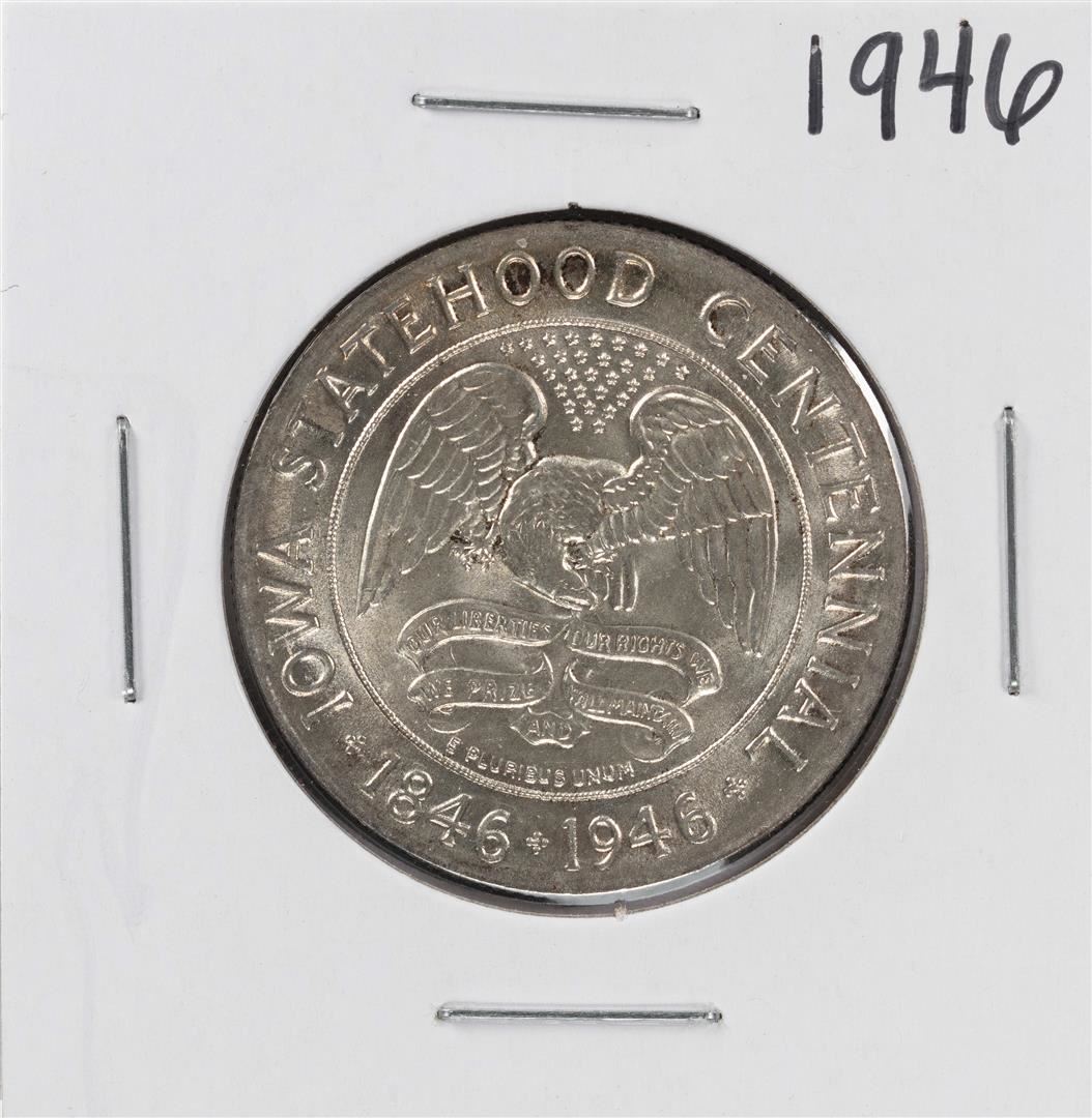 One 1946 Iowa Centennial Commemorative Half Dollar Coin.