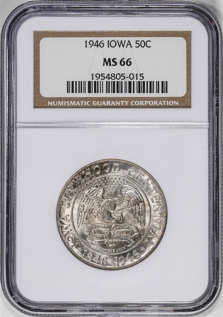 One 1946 Iowa Commemorative Half Dollar Coin NGC MS66. NGC Certified.