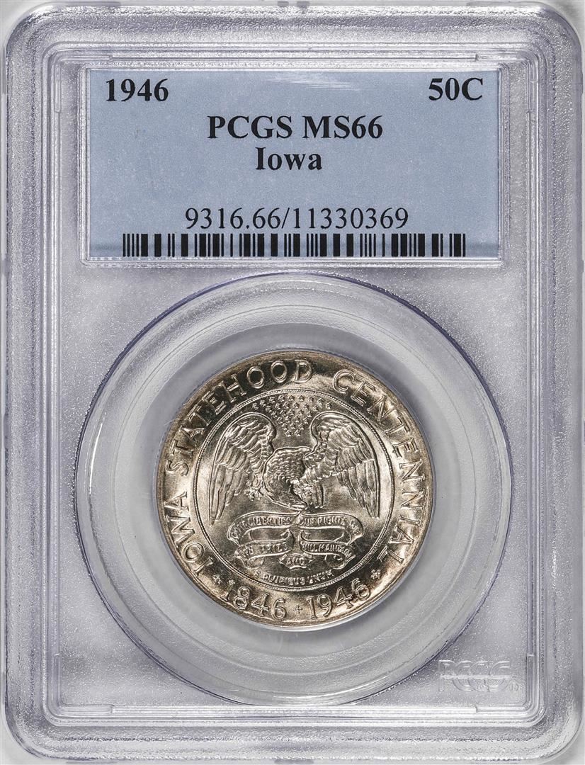 One 1946 Iowa Commemorative Half Dollar Coin PCGS MS66 Nice Toning. PCGS Graded.