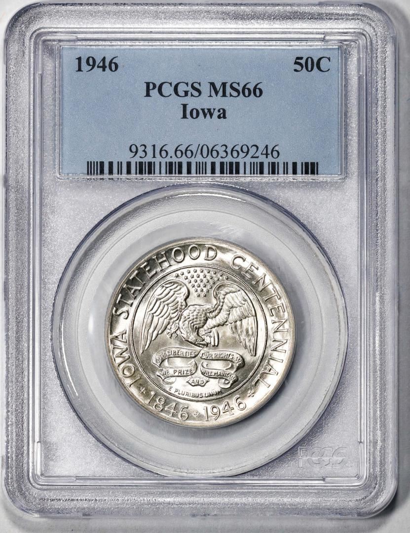 One 1946 Iowa Statehood Centennial Commemorative Half Dollar Coin PCGS MS66. PCGS Graded.
