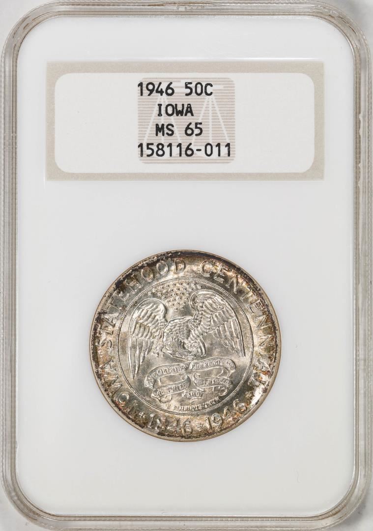 1946 Iowa Statehood Commemorative Half Dollar Coin NGC MS65 Old Fatty Holder