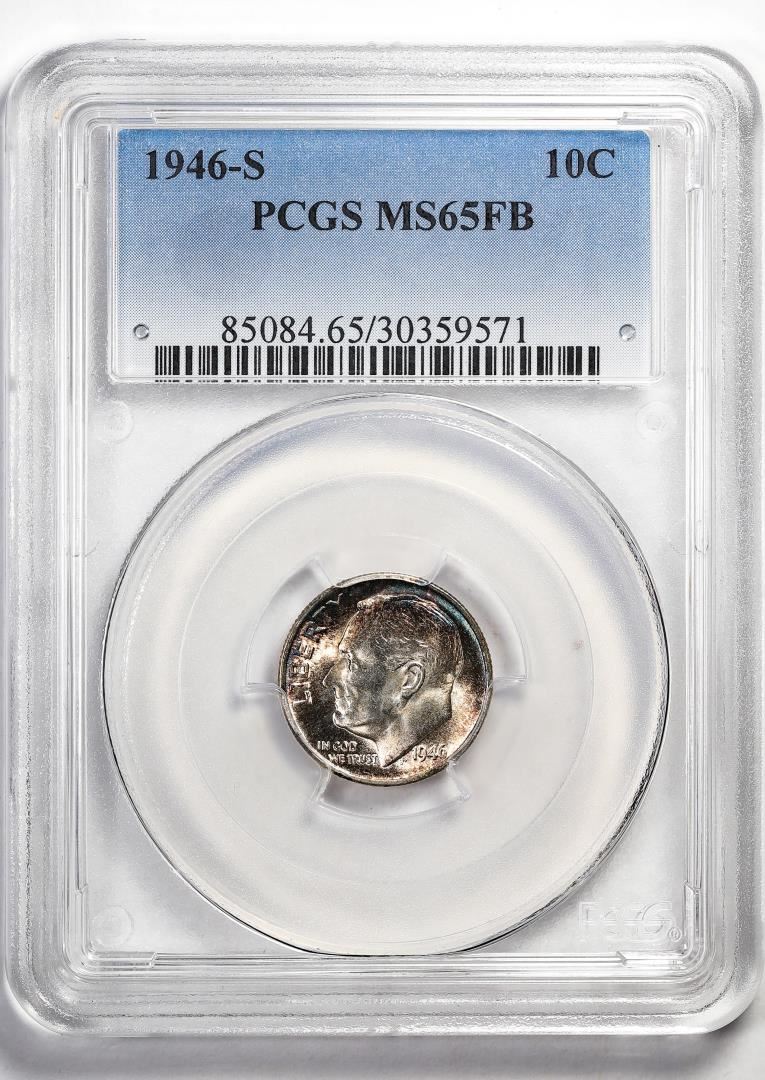 One 1946-S Roosevelt Dime Coin PCGS MS65FB Nice Toning. PCGS Graded.