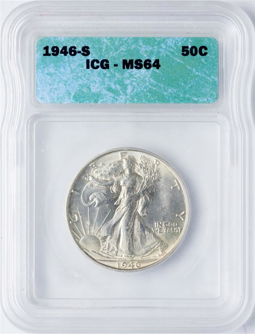 One 1946-S Walking Liberty Half Dollar Coin ICG MS64. ICG Certified.