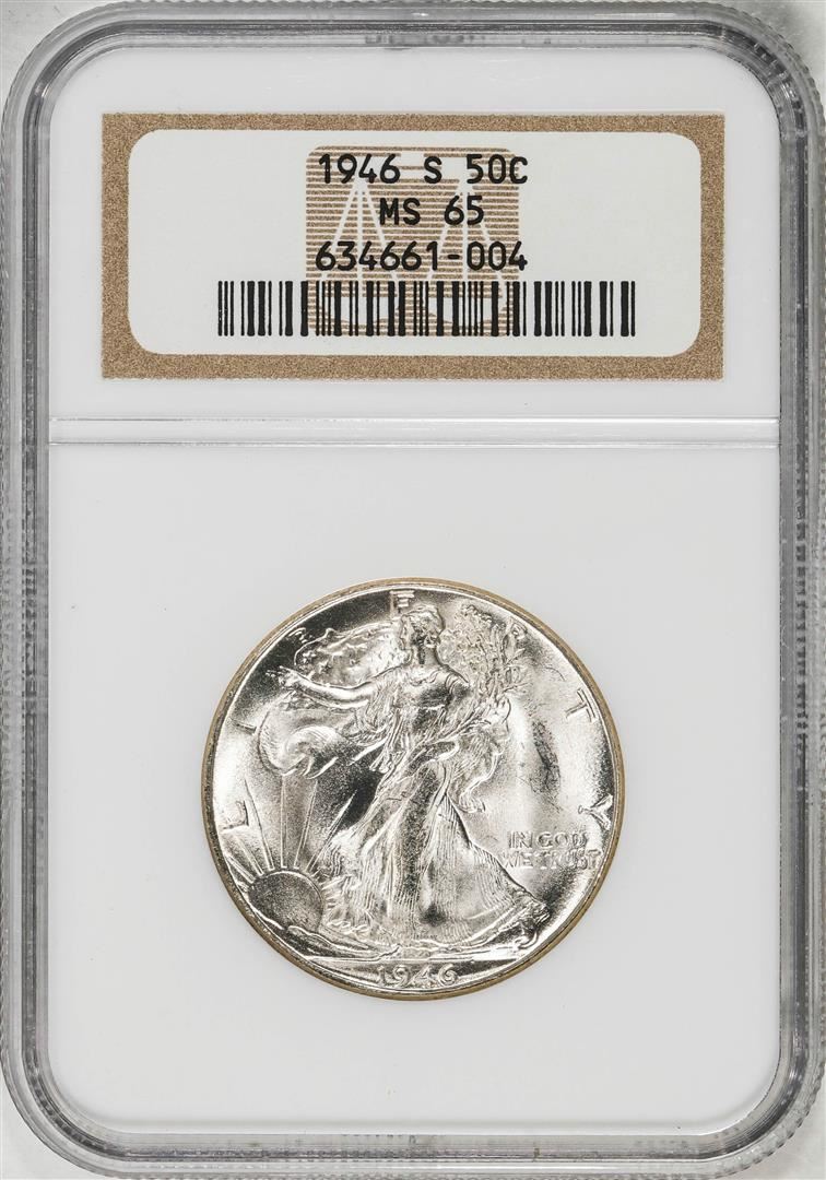 One 1946-S Walking Liberty Half Dollar Coin NGC MS65. NGC Certified.