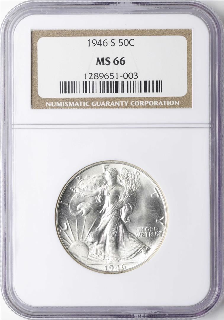 One 1946-S Walking Liberty Half Dollar Coin NGC MS66. NGC Certified.