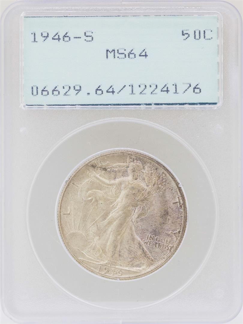 1946-S Walking Liberty Half Dollar Coin PCGS MS64 Green Rattler Holder