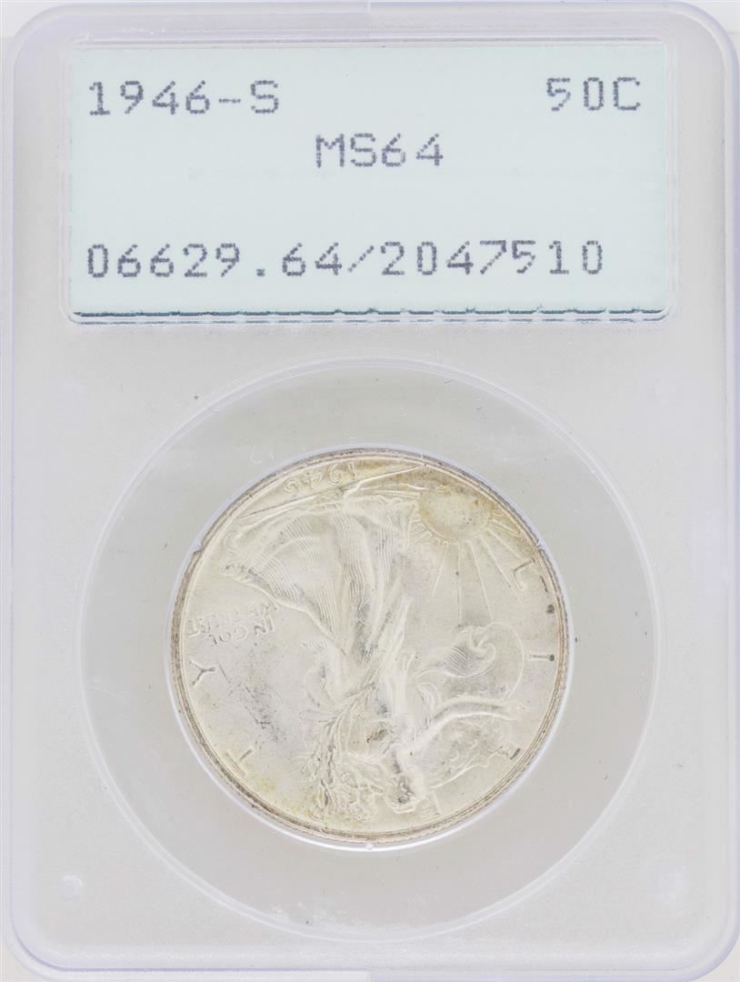 1946-S Walking Liberty Half Dollar Coin PCGS MS64 Green Rattler Holder