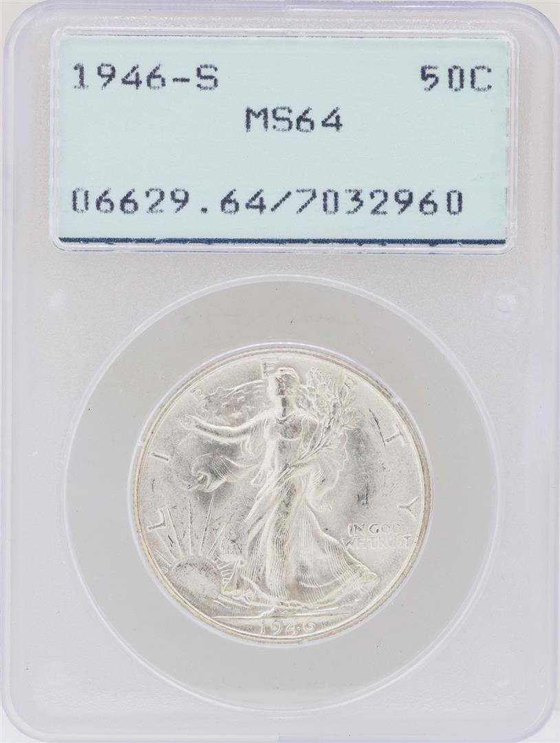 1946-S Walking Liberty Half Dollar Coin PCGS MS64 Green Rattler Holder