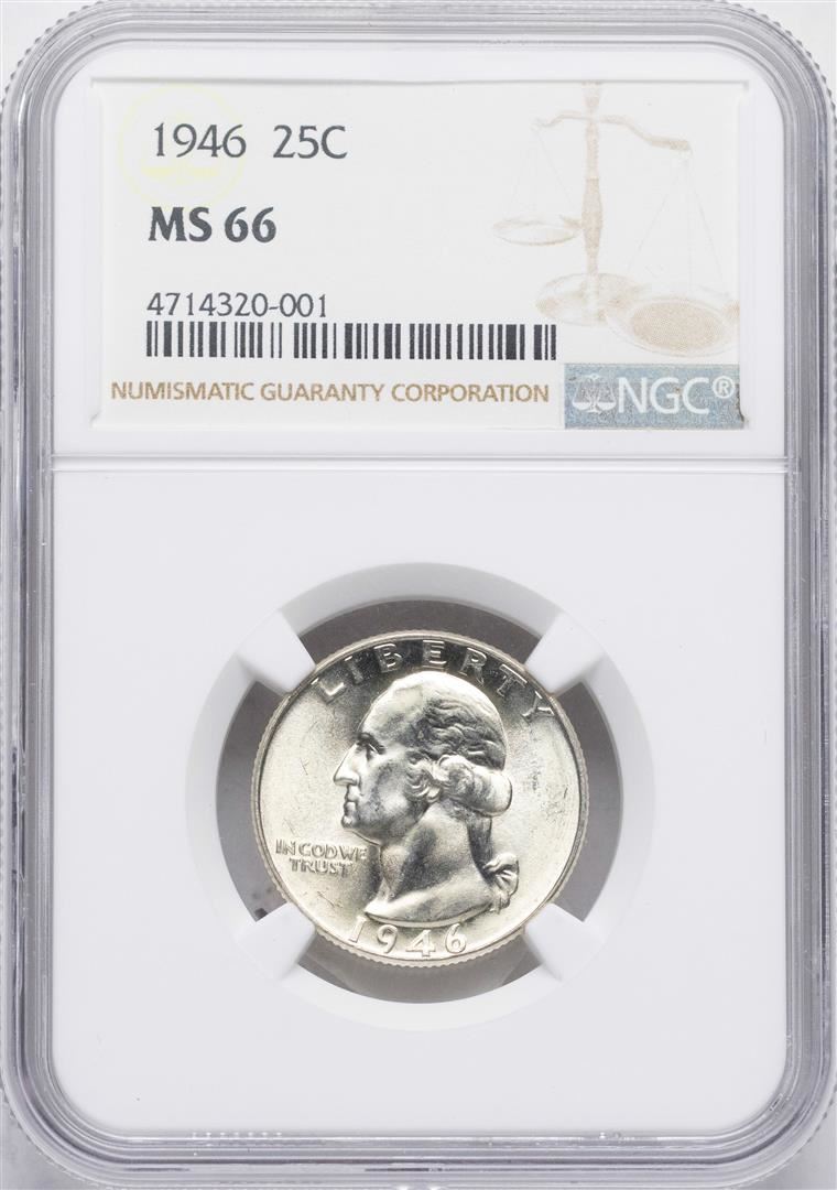 One 1946 Washington Quarter Coin NGC MS66. NGC Certified.