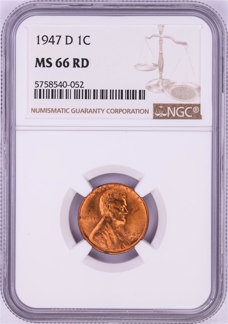 One 1947-D Lincoln Wheat Cent Coin NGC MS66RD. NGC Certified.