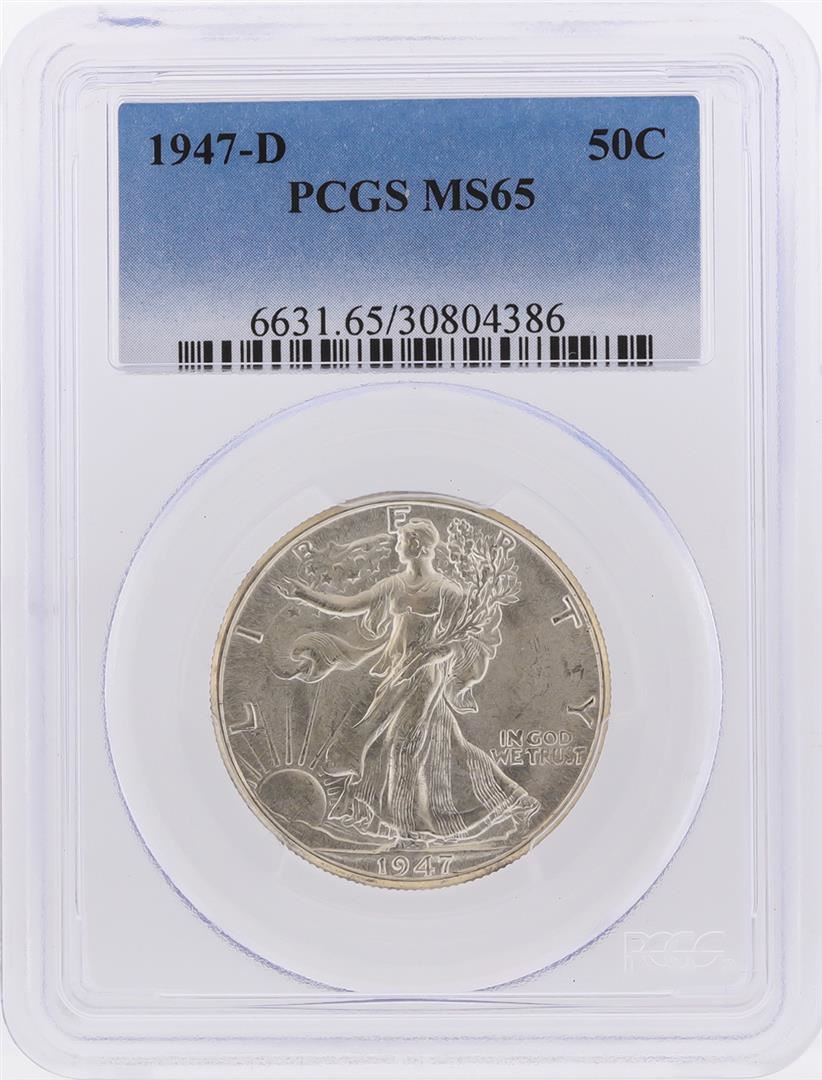 One 1947-D Walking Liberty Half Dollar Coin PCGS Graded MS65. PCGS Graded.