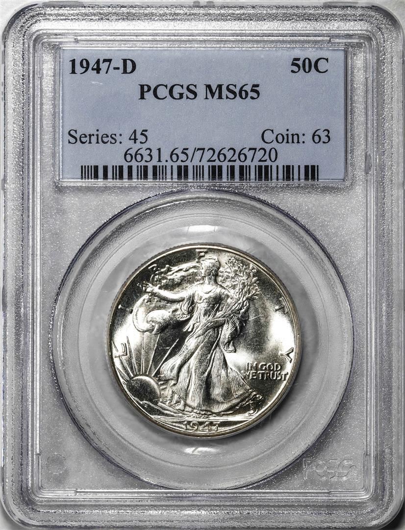 One 1947-D Walking Liberty Half Dollar Coin PCGS MS65. PCGS Graded.