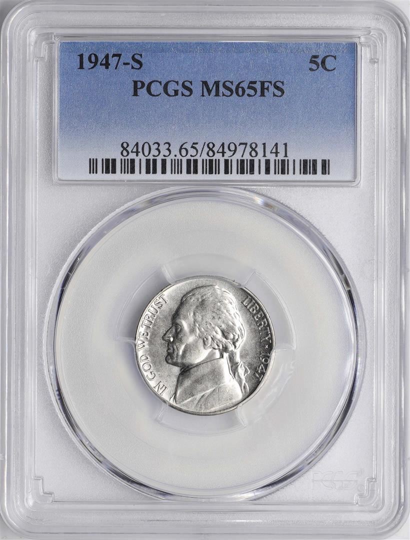 One 1947-S Jefferson Nickel Coin PCGS MS65FS. PCGS Graded.