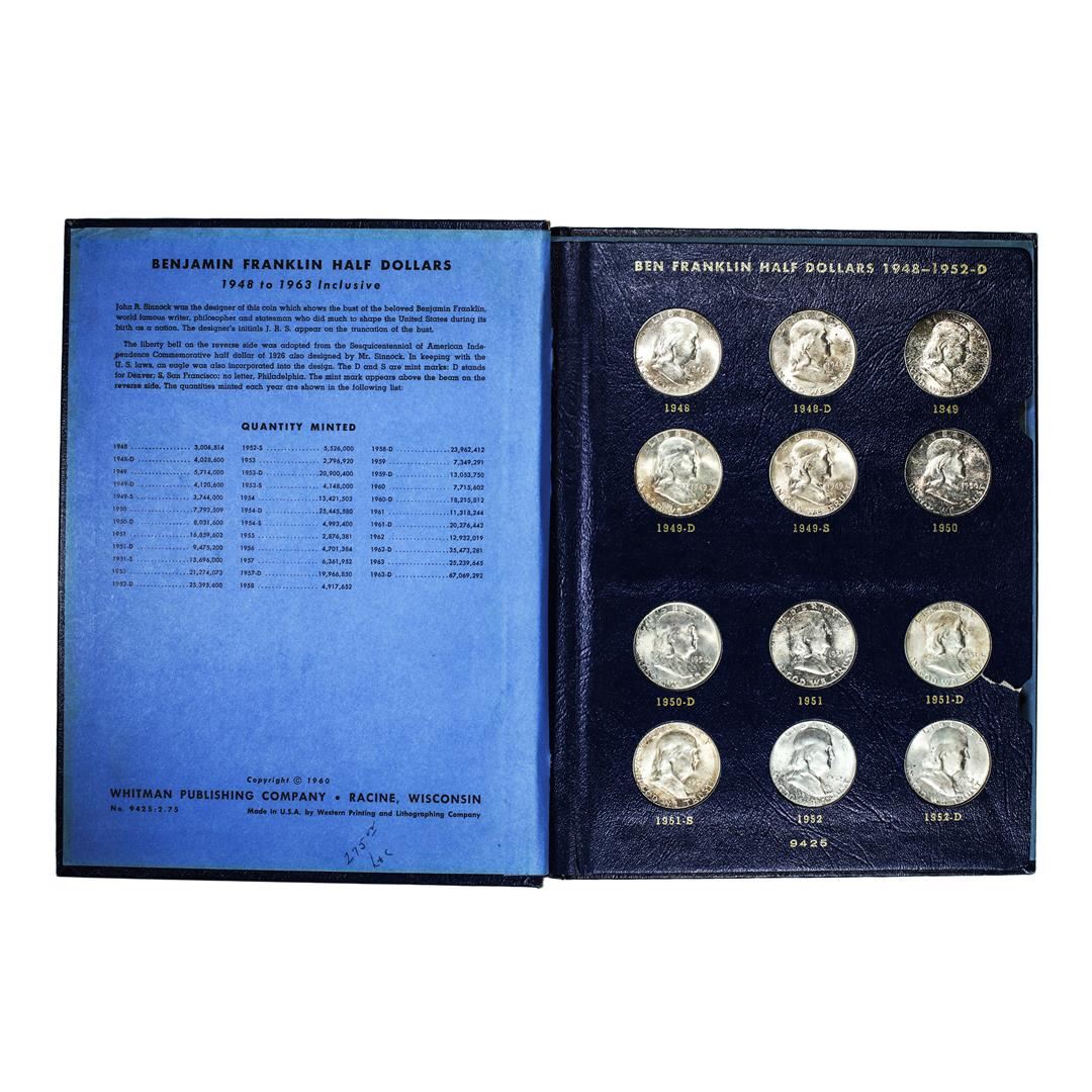 One 1948-1963 Franklin Half Dollar Set in Whitman Book.