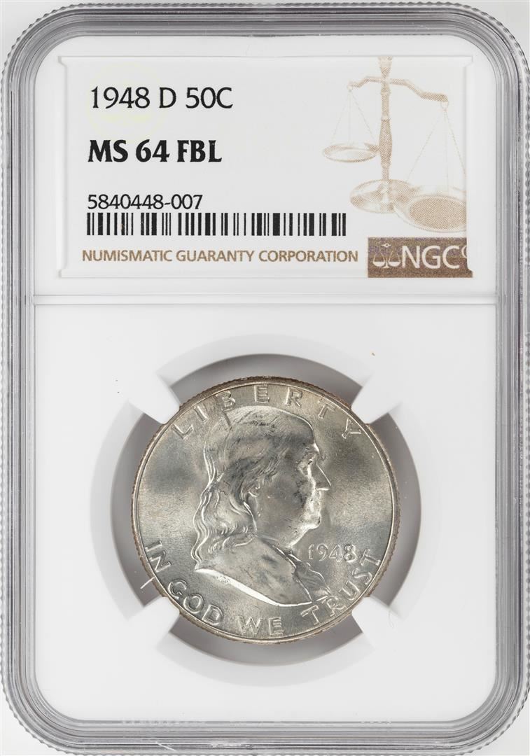 One 1948-D Franklin Half Dollar Coin NGC MS64FBL. NGC Certified.