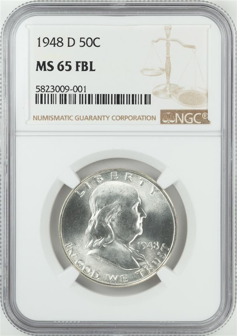 One 1948-D Franklin Half Dollar Coin NGC MS65FBL. NGC Certified.