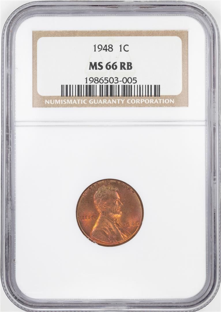 One 1948 Lincoln Wheat Cent Coin NGC MS66RB. NGC Certified.