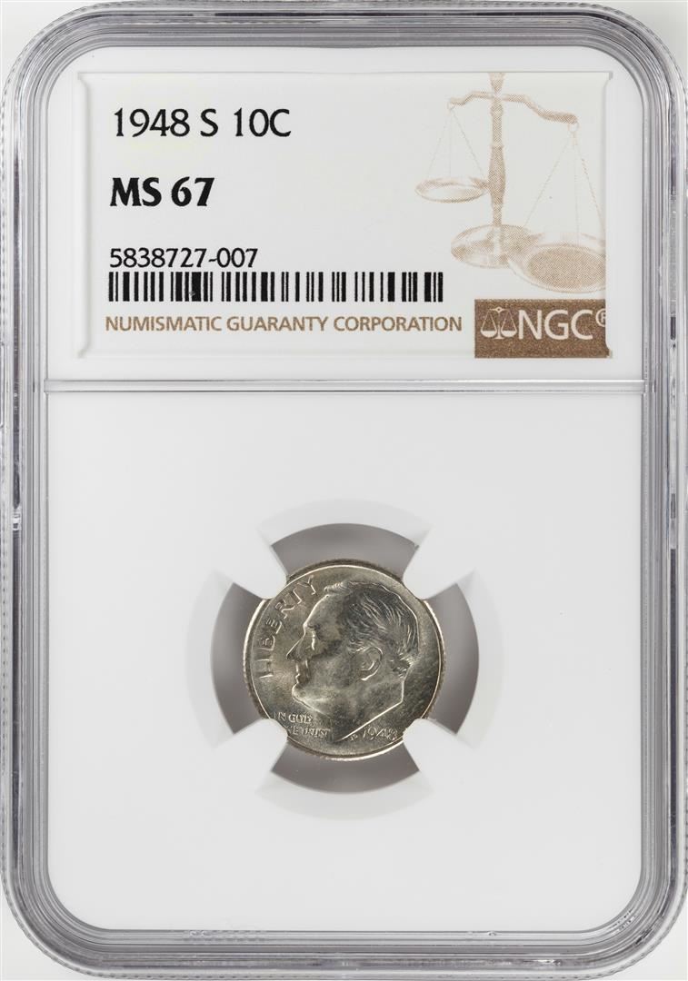 One 1948-S Roosevelt Dime Coin NGC MS67. NGC Certified.
