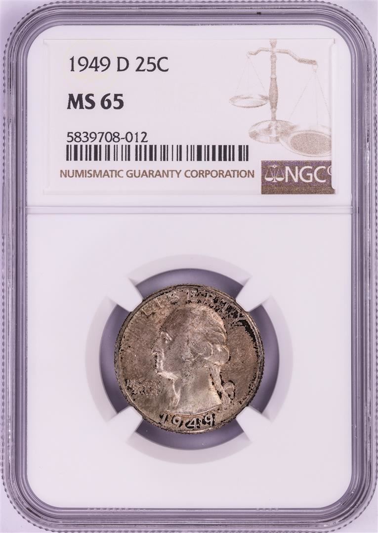 One 1949-D Washington Quarter Coin NGC MS65. NGC Certified.