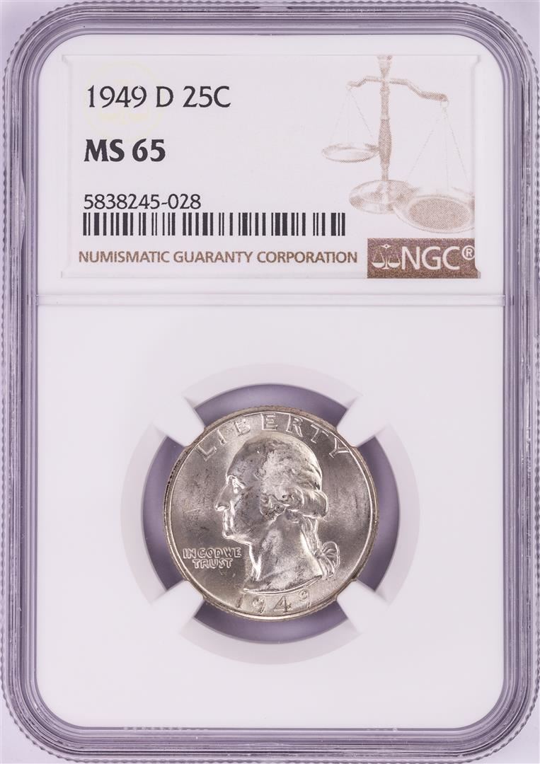 One 1949-D Washington Quarter Coin NGC MS65. NGC Certified.