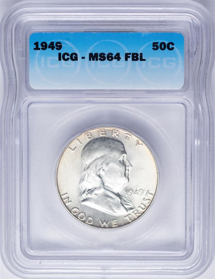 One 1949 Franklin Half Dollar Coin ICG MS64 FBL. ICG Certified.