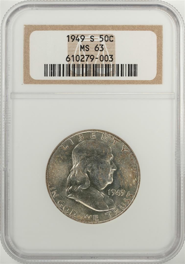 One 1949-S Franklin Half Dollar Coin NGC MS63. NGC Certified.