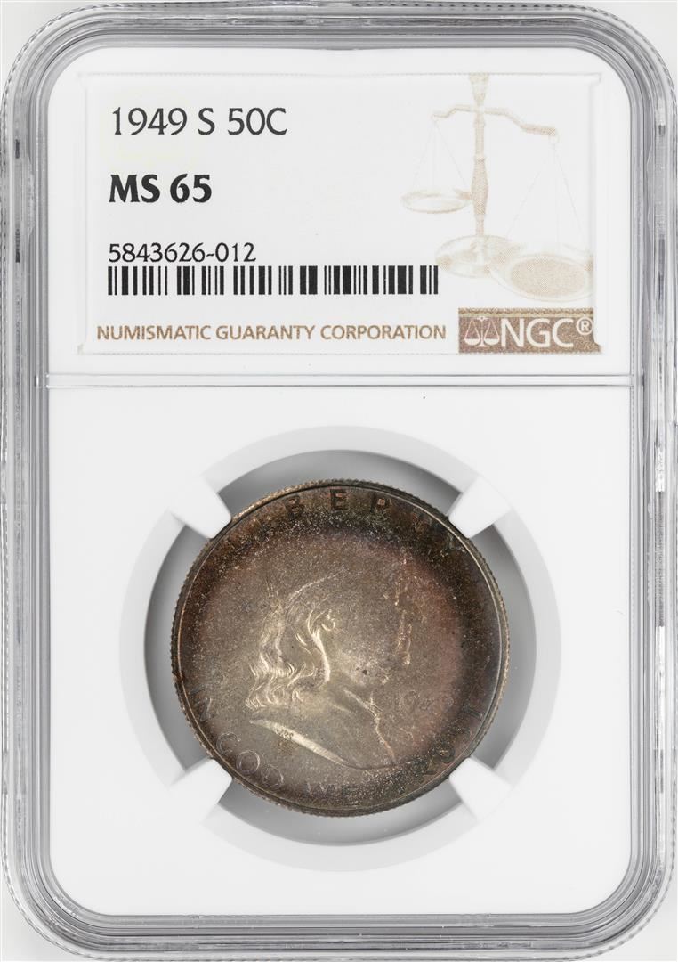 One 1949-S Franklin Half Dollar Coin NGC MS65. NGC Certified.