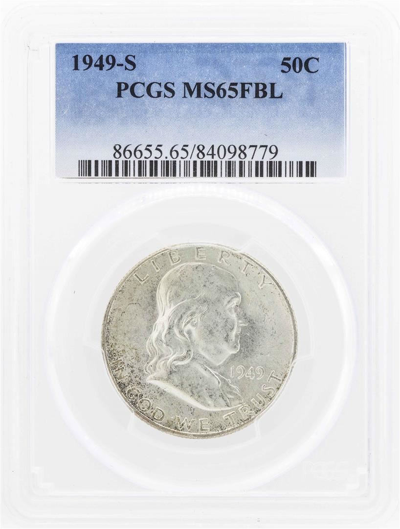 One 1949-S Franklin Half Dollar Coin PCGS MS65FBL. PCGS Graded.