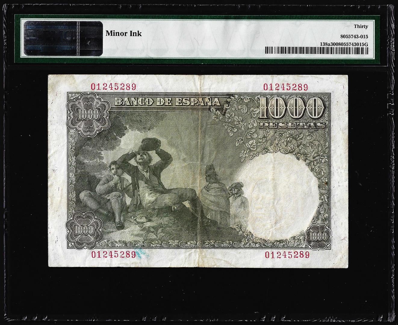One 1949 Spain Banco de Espana 1,000 Pesetas Note Pick# 138a PMG Very Fine 30. PMG Certified.