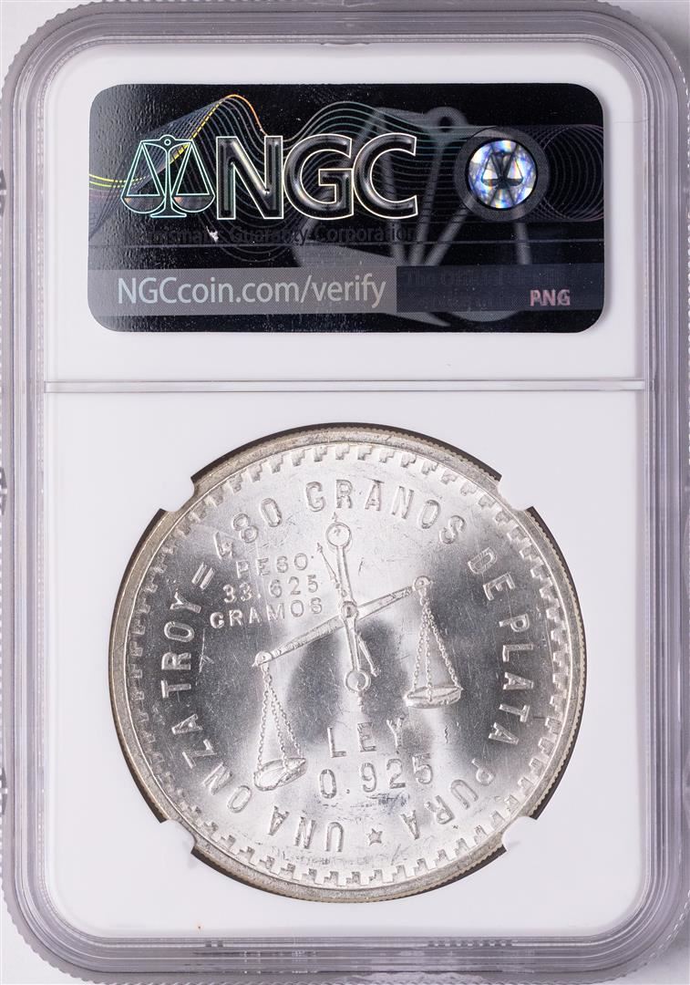 One 1949Mo Mexico 1 Onza Silver Coin NGC MS64. NGC Certified.