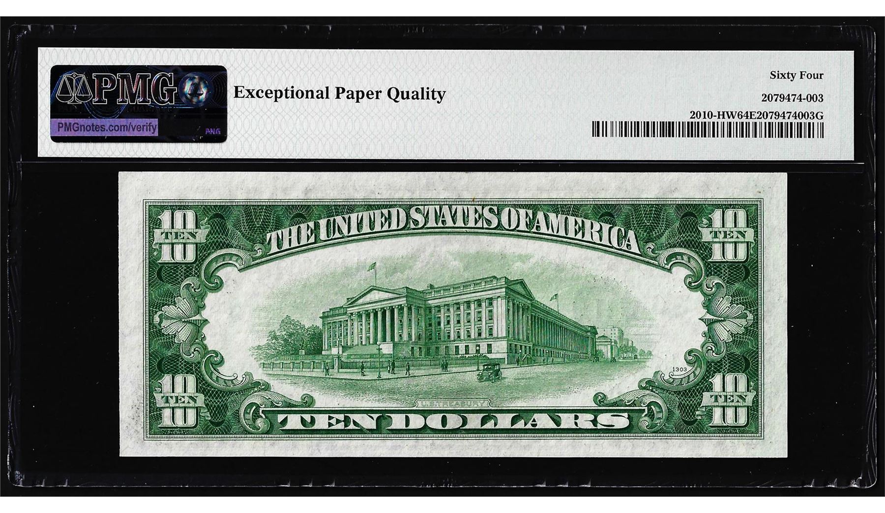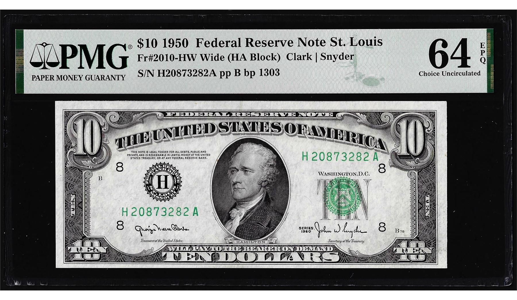 One 1950 $10 Federal Reserve Note St. Louis Fr.2010-HW PMG Choice Uncirculated 64EPQ. PMG Certified.