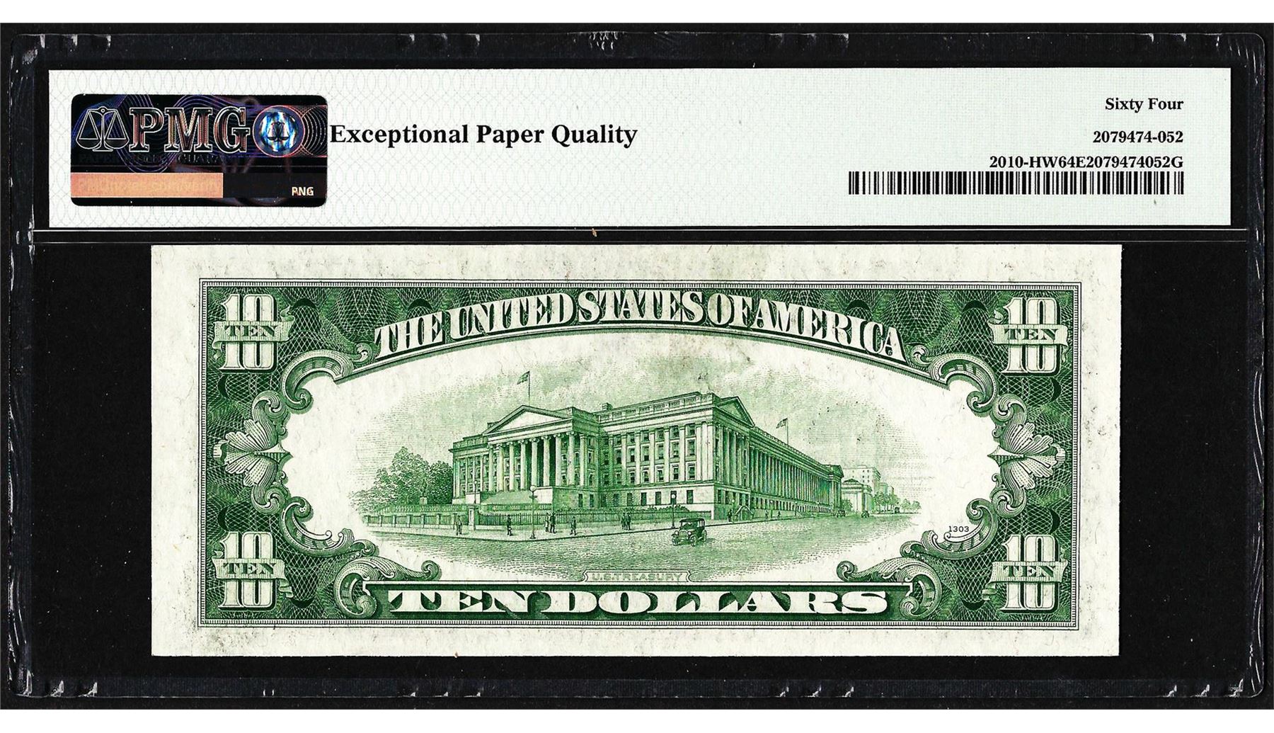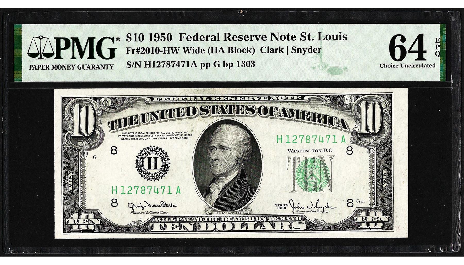 One 1950 $10 Federal Reserve Note St. Louis Fr.2010-HW PMG Choice Uncirculated 64EPQ. PMG Certified.