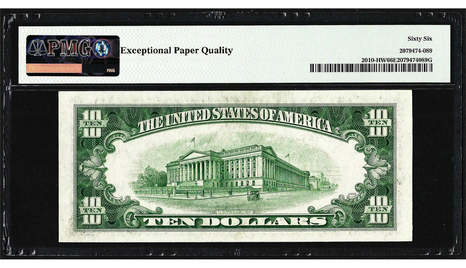 One 1950 $10 Federal Reserve Note St. Louis Fr.2010-HW Wide PMG Gem Uncirculated 66EPQ. PMG Certified.