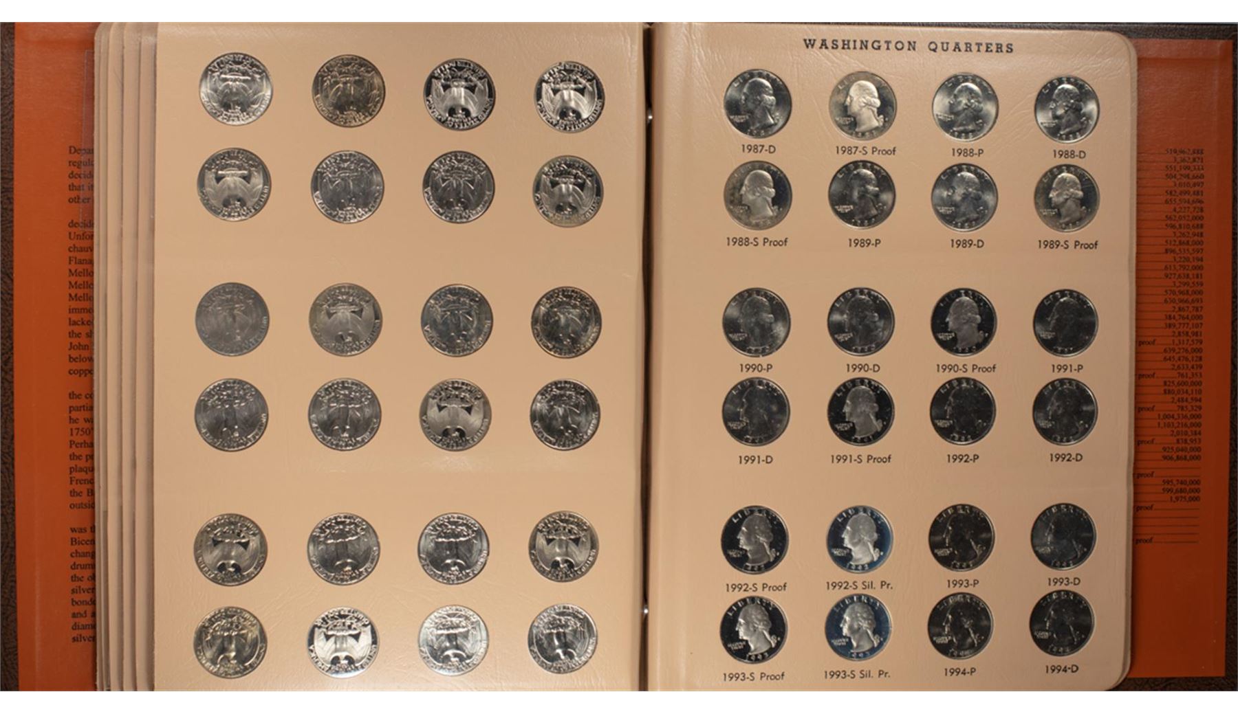 One 1950-1998 Washington Quarter (138) Coins in Dansco Book.