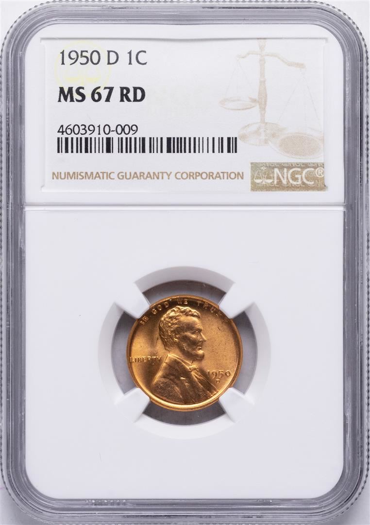 One 1950-D Lincoln Wheat Cent Coin NGC MS67RD. NGC Certified.
