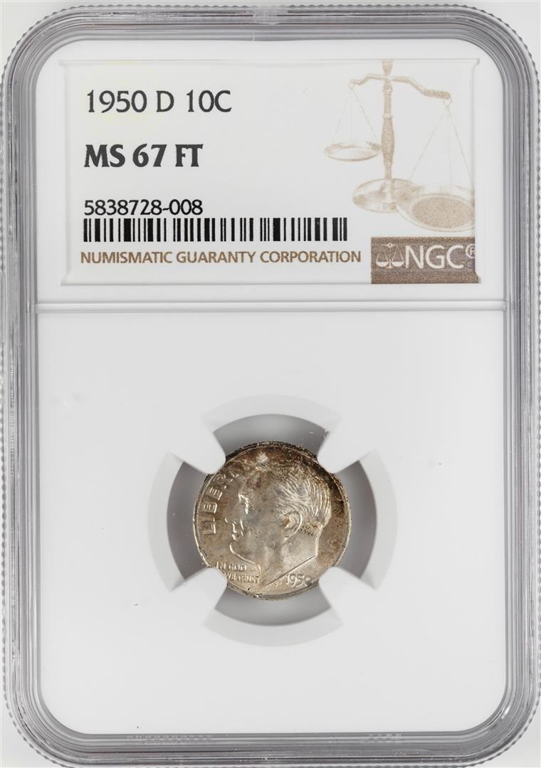 One 1950-D Roosevelt Dime Coin NGC MS67FT. NGC Certified.
