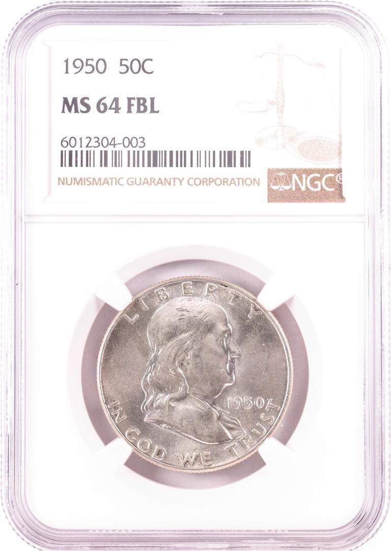 One 1950 Franklin Half Dollar Coin NGC MS64FBL. NGC Certified.