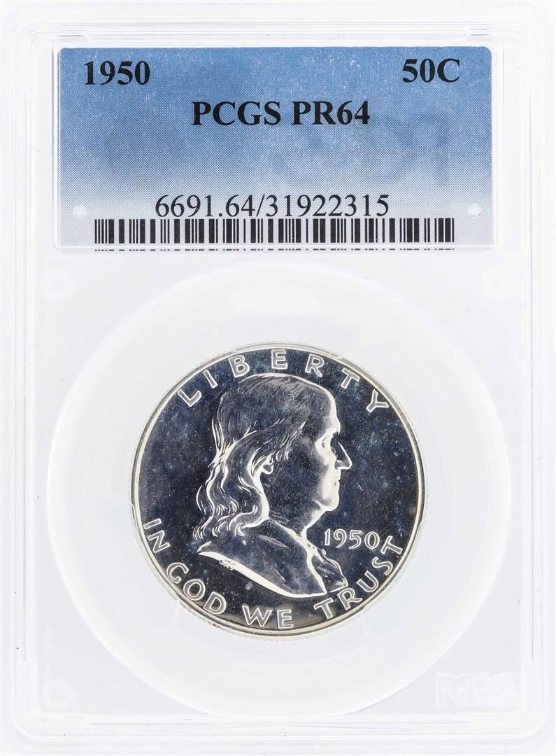 One 1950 Franklin Half Dollar Silver Proof Coin PCGS PR64. PCGS Graded.